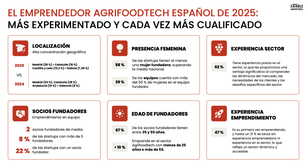 El informe pone de relieve una mayor madurez en el perfil emprendedor: la edad media del fundador asciende a 42 años y destaca un elevado nivel educativo, así como experiencia previa en el sector. Todo ello refleja una clara evolución hacia una mayor profesionalización del ecosistema.