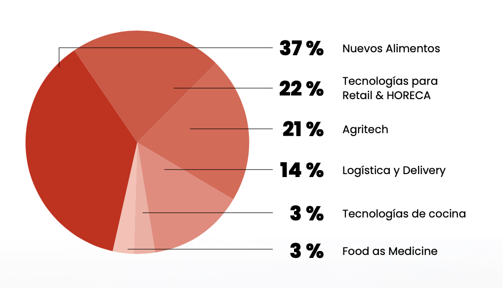 En términos de verticales, el ecosistema mantiene una distribución estable, con las categorías de Nuevos Alimentos, Agritech y Retail & HORECA como áreas principales de innovación. A ellas se suman avances en logística, sensórica, automatización, agricultura de precisión y economía circular, consolidando un ecosistema orientado a la aplicación industrial.