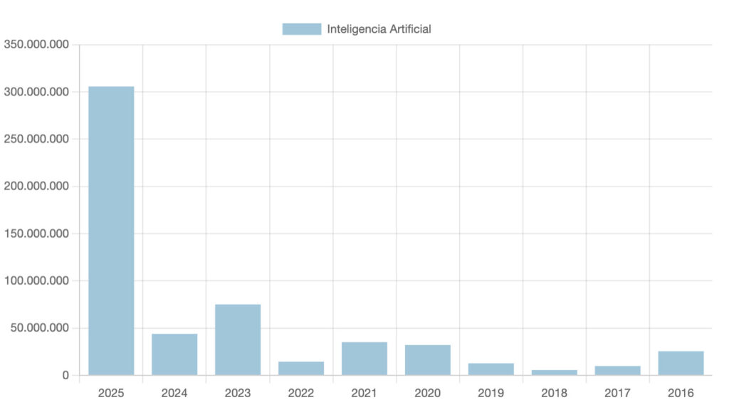 En lo que va de año, la Inteligencia Artificial es el sector que más inversión ha captado: 305.774.999 euros en 29 operaciones.
